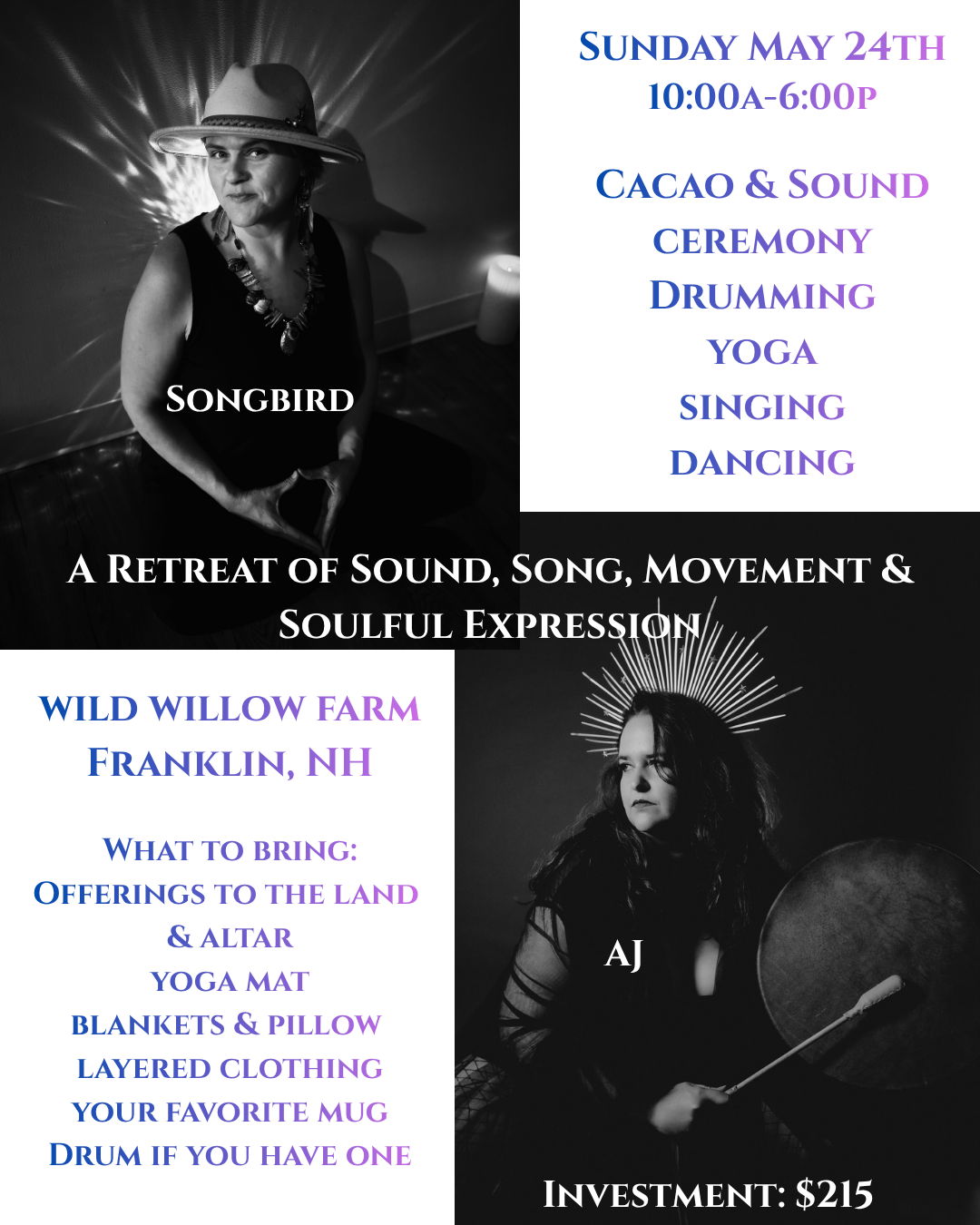 “Jessica is incredible! A natural-born singer and a fabulous musician. I have attended many sound baths, and hers topped them all. Her voice and the resonance that I felt in my body blew me away. I highly recommend finding out how sound can heal with Songbird Soul Healing!”